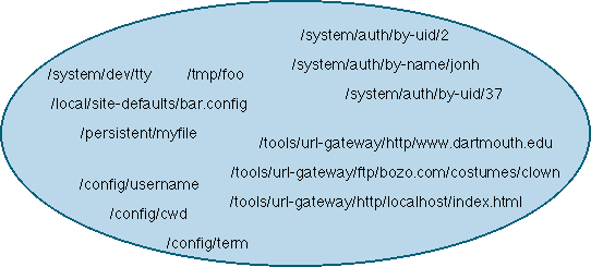 Still other resources have grown up outside the filesystem namespace. The difficulty of user-level extension to the filesystem could be partly to blame. For example, URLs are hierarchical like Unix paths, and have been shown to fit nicely into a pervasive namespace. Socket endpoints are named in a separate (address, service port) namespace. One could imagine a namespace interface to database systems that would allow the use of common tools on database objects. While having objects share a namespace doesn't guarantee that they will be interoperable, having objects live in separate namespaces all but prevents interoperability. A pervasive namespace is an important first step toward enhancing modularity. |